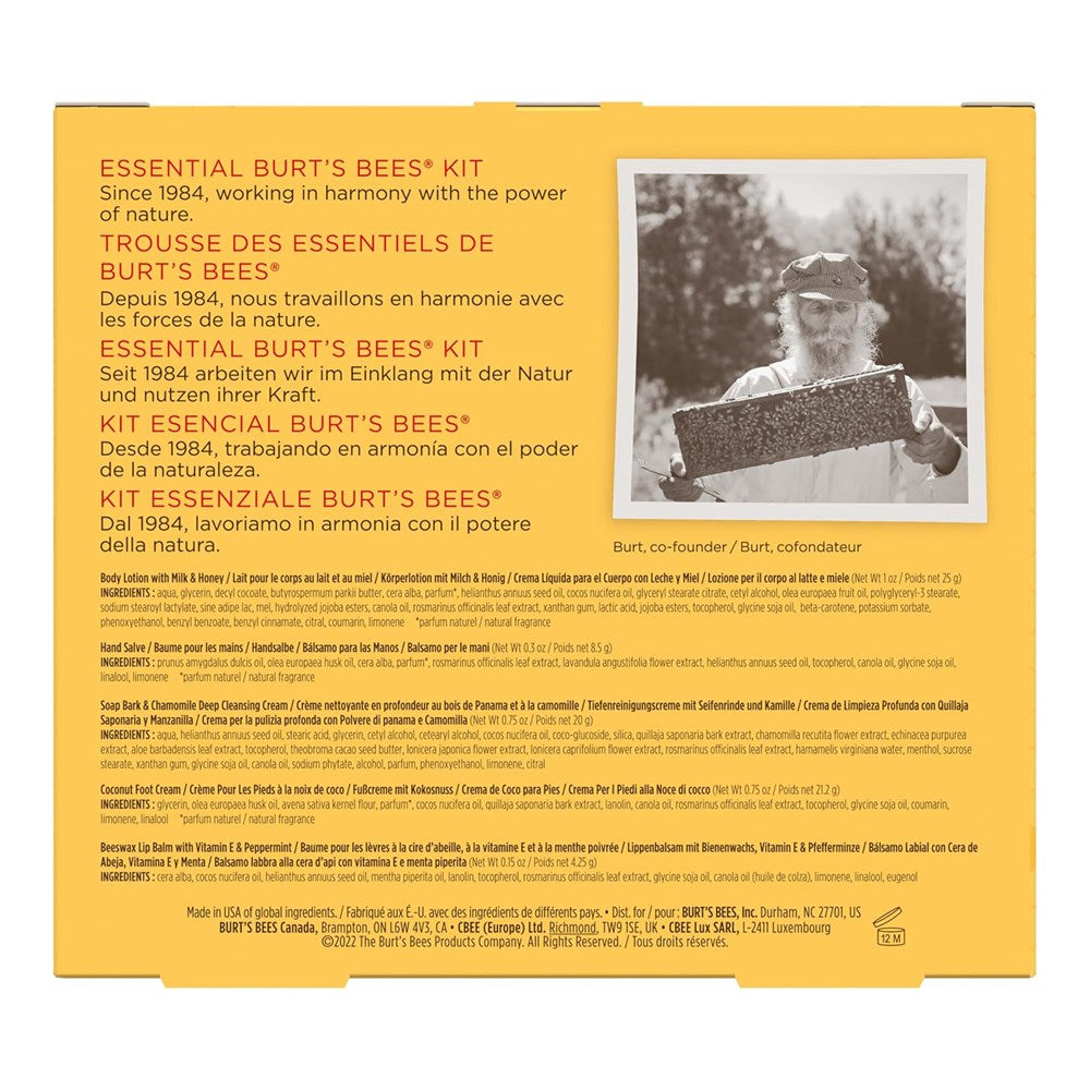 - GIFT SET: Gift set contains 5 popular trial sizes of Burt’s Bees products to nourish the skin and pamper your entire body