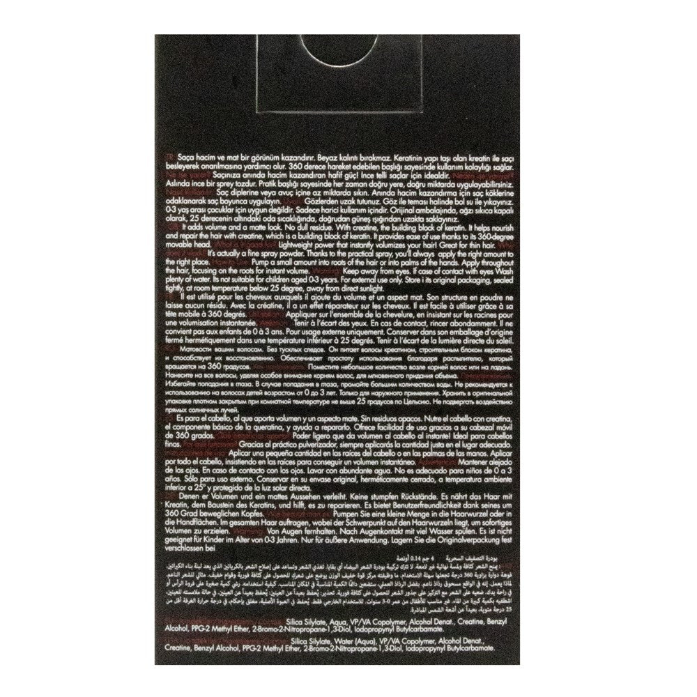 It adds volume and a matte look. Powder texture hair on white leaves no residue. With creatine, the building block of keratin. It helps nourish and repair the hair with creatine, which is a building block of keratin It provides ease of use thanks to its 360-degree movable head.