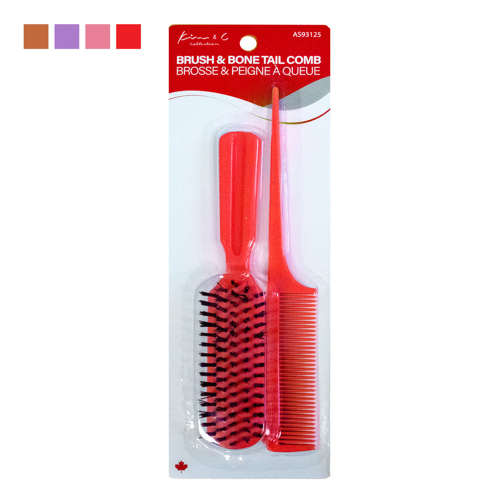- AS93125: KIM & C Brush & Comb Combo - Bone Tail Comb - Assorted