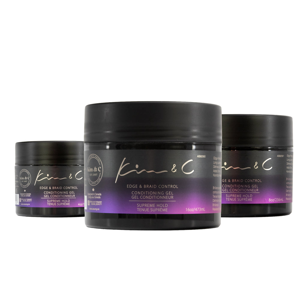 EN: Kim&C conditioning gel delivers clean, long-lasting hold with a flake-free, non-greasy finish. Ideal for braids, parting, edge control, and sleek looks, it smooths flyaways and adds natural shine while helping hair feel soft and manageable.