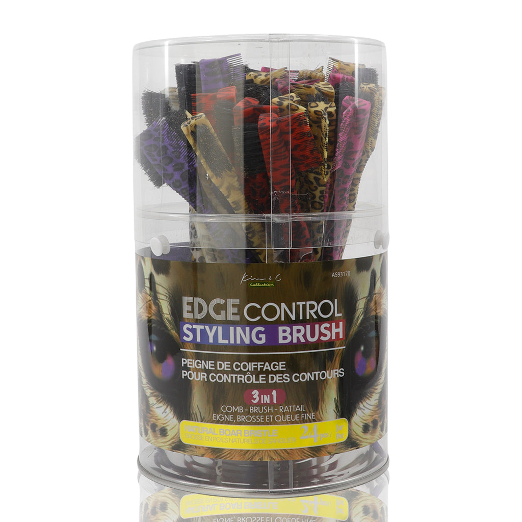 Kim & C Leopard 3 in 1 Edge Control Styling Brush-firm boar bristle-24pcs/Jar